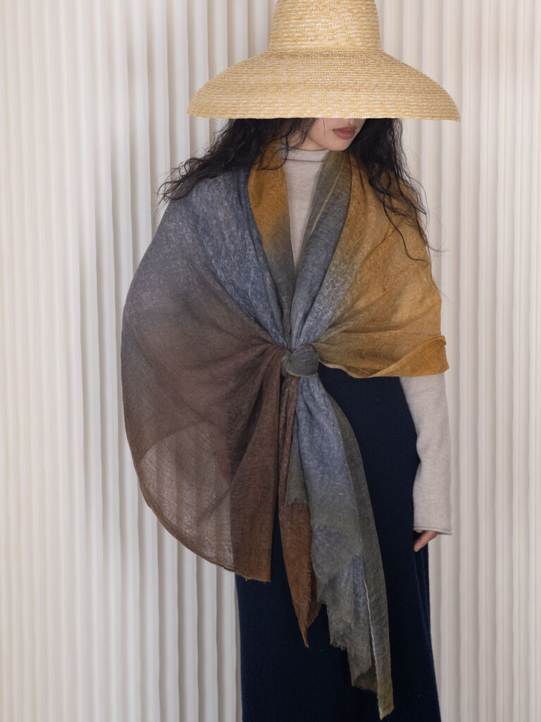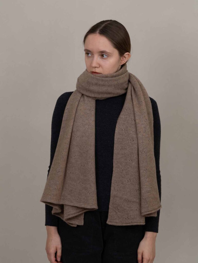 A discreet opening on one side allows the scarf to be easily pulled through, creating an effortless look.