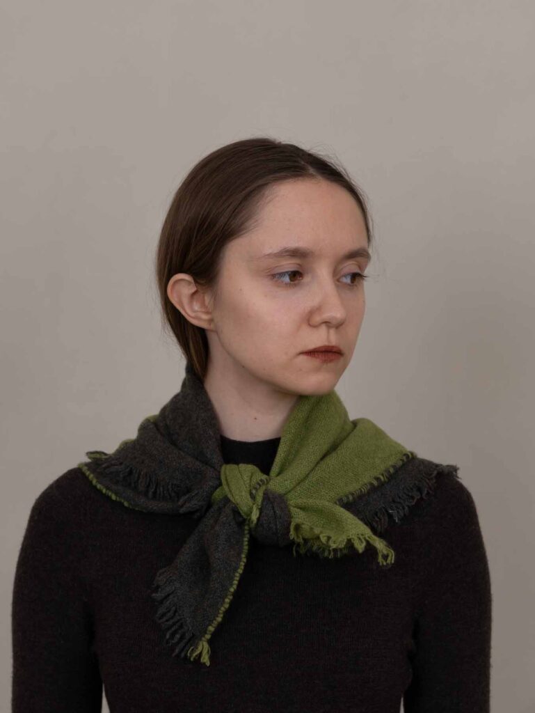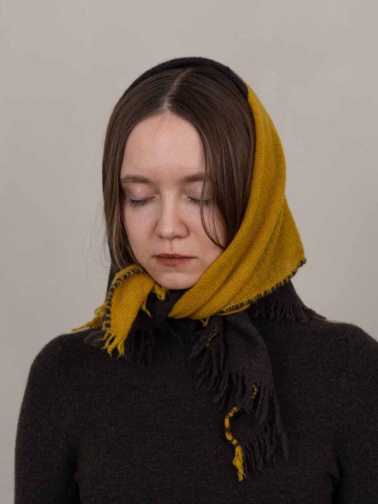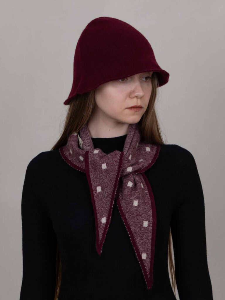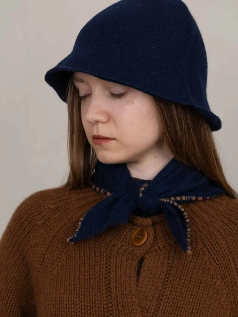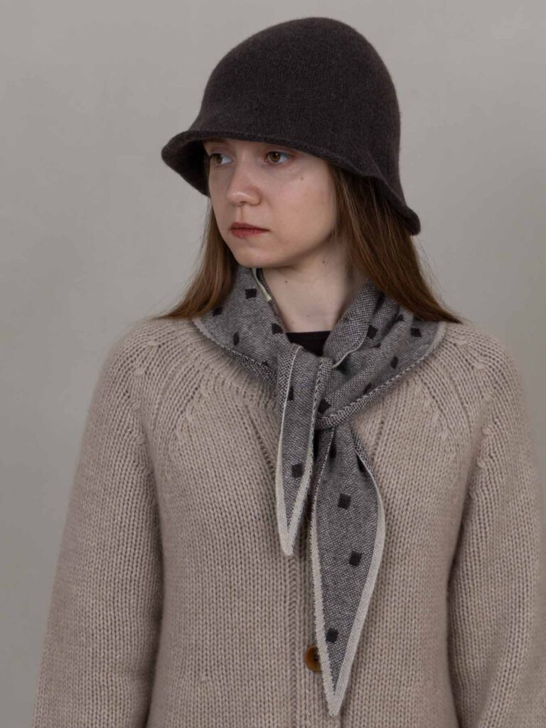 Playful square patterns are knitted into a triangular shape, designed to pair perfectly with our Bell Bucket Hat or Cottage Beanie.
