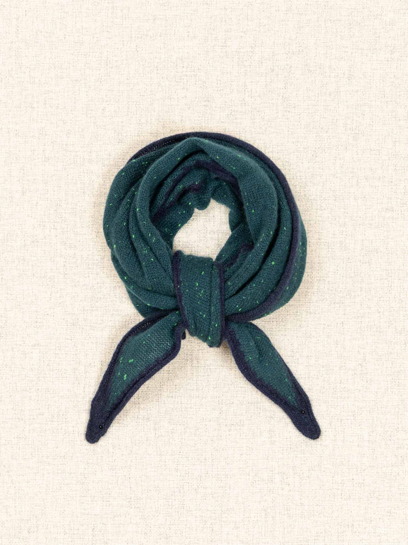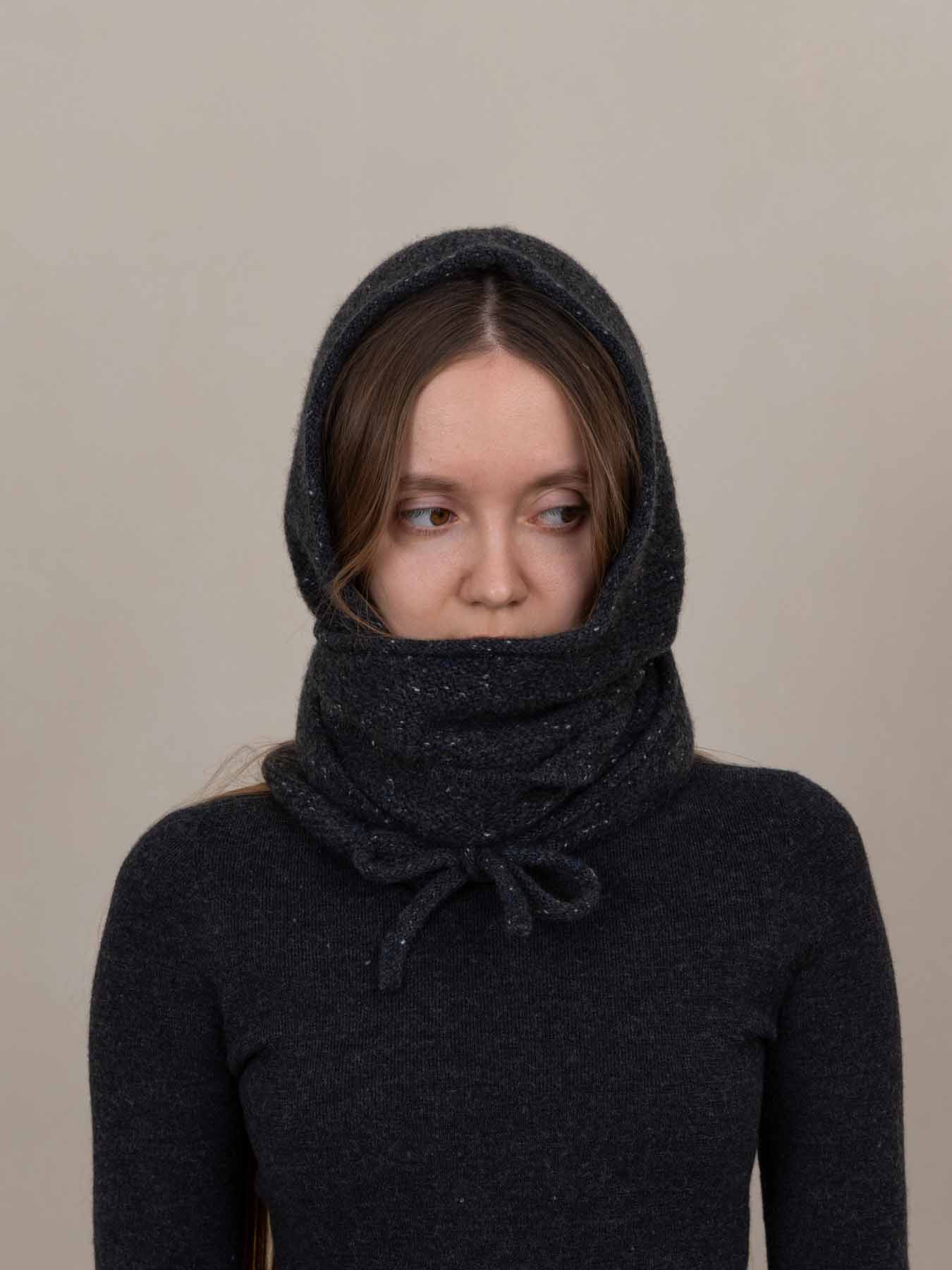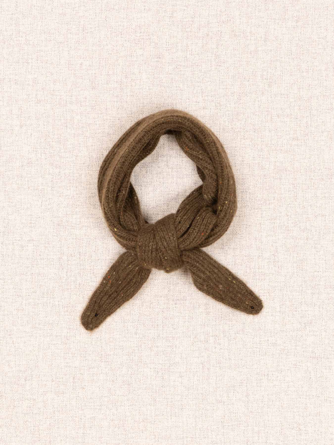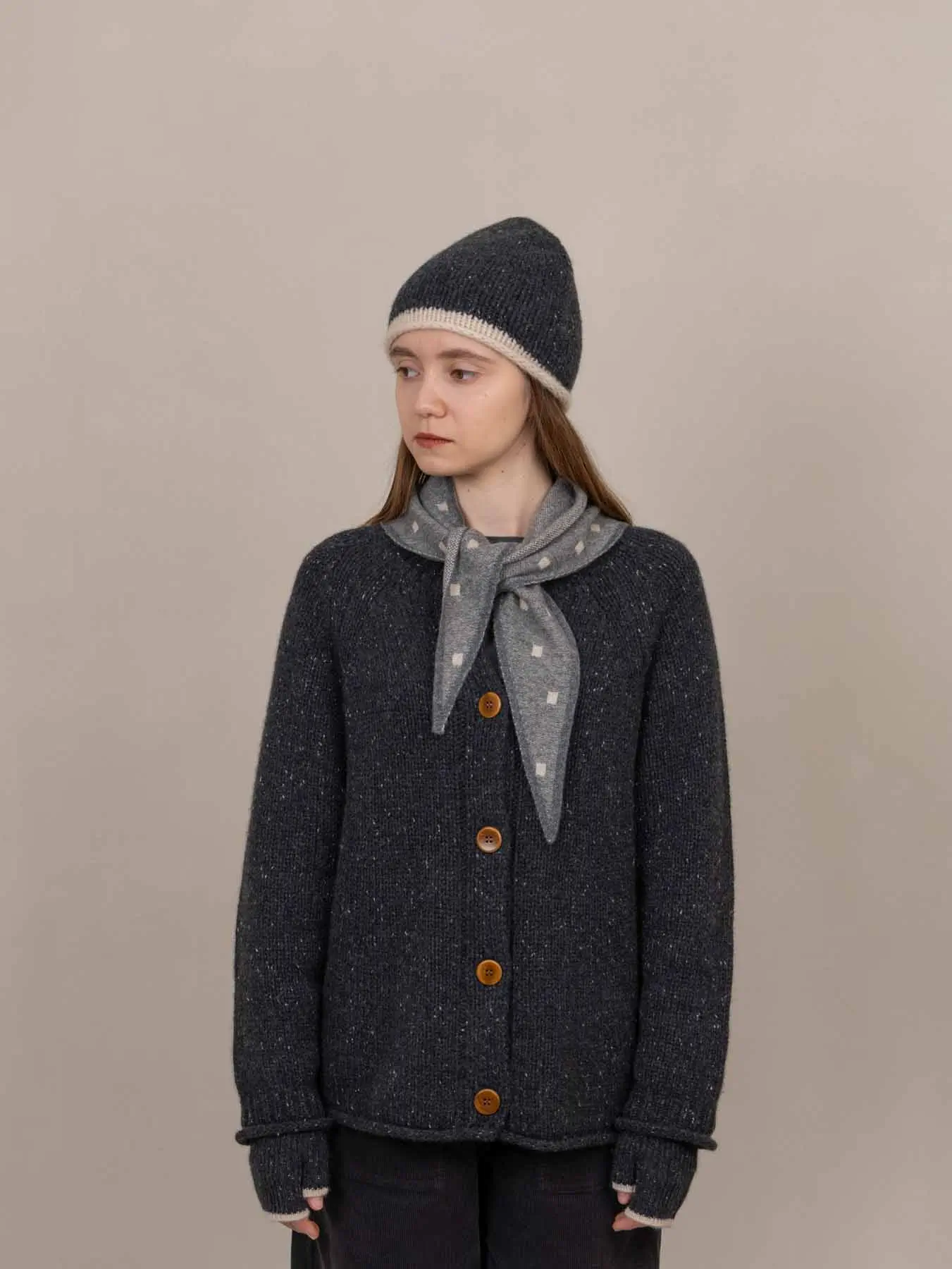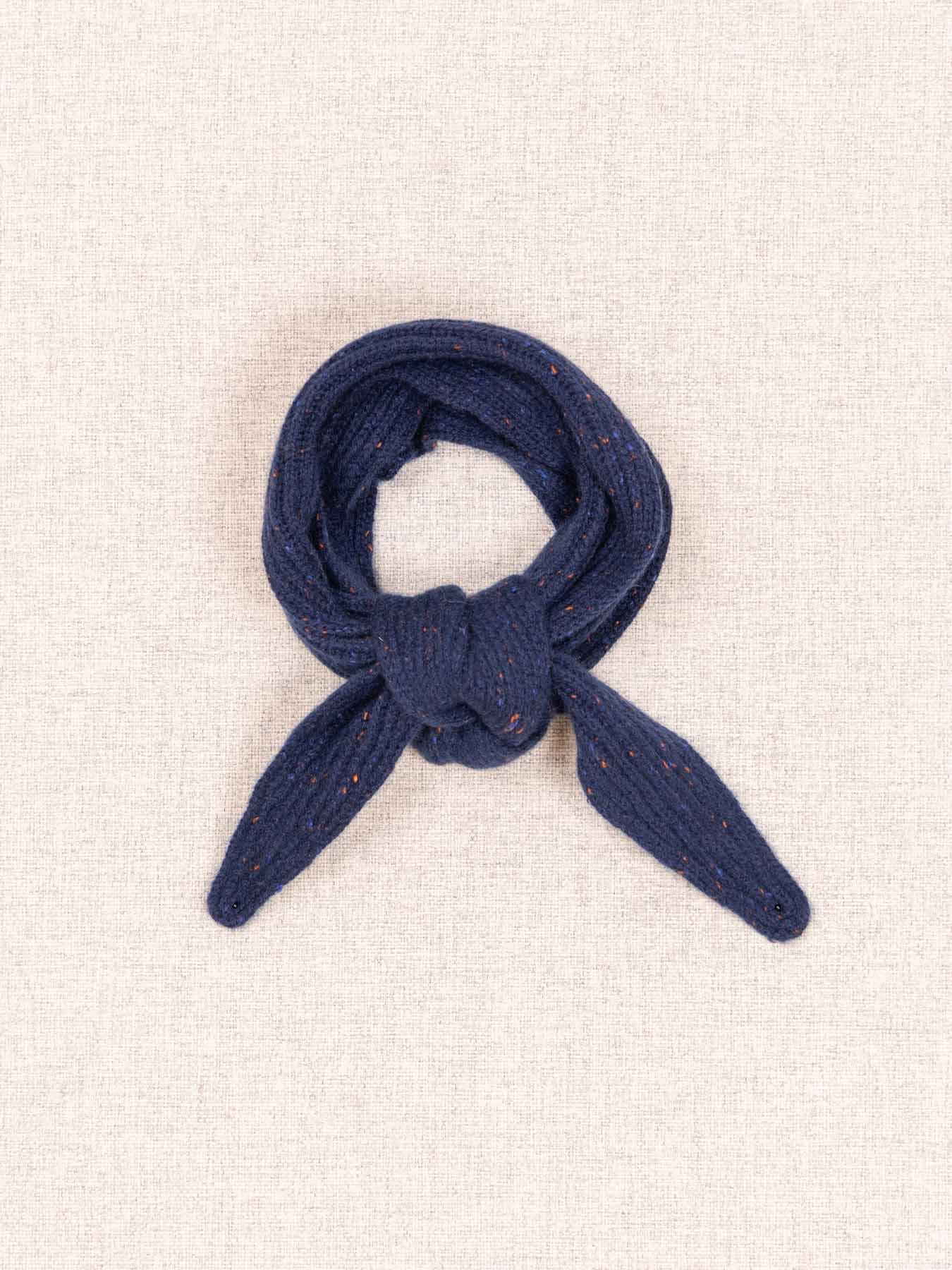 Flecked yarn brings subtle depth to the solid colour, finished with a dense knit in a tie shape.