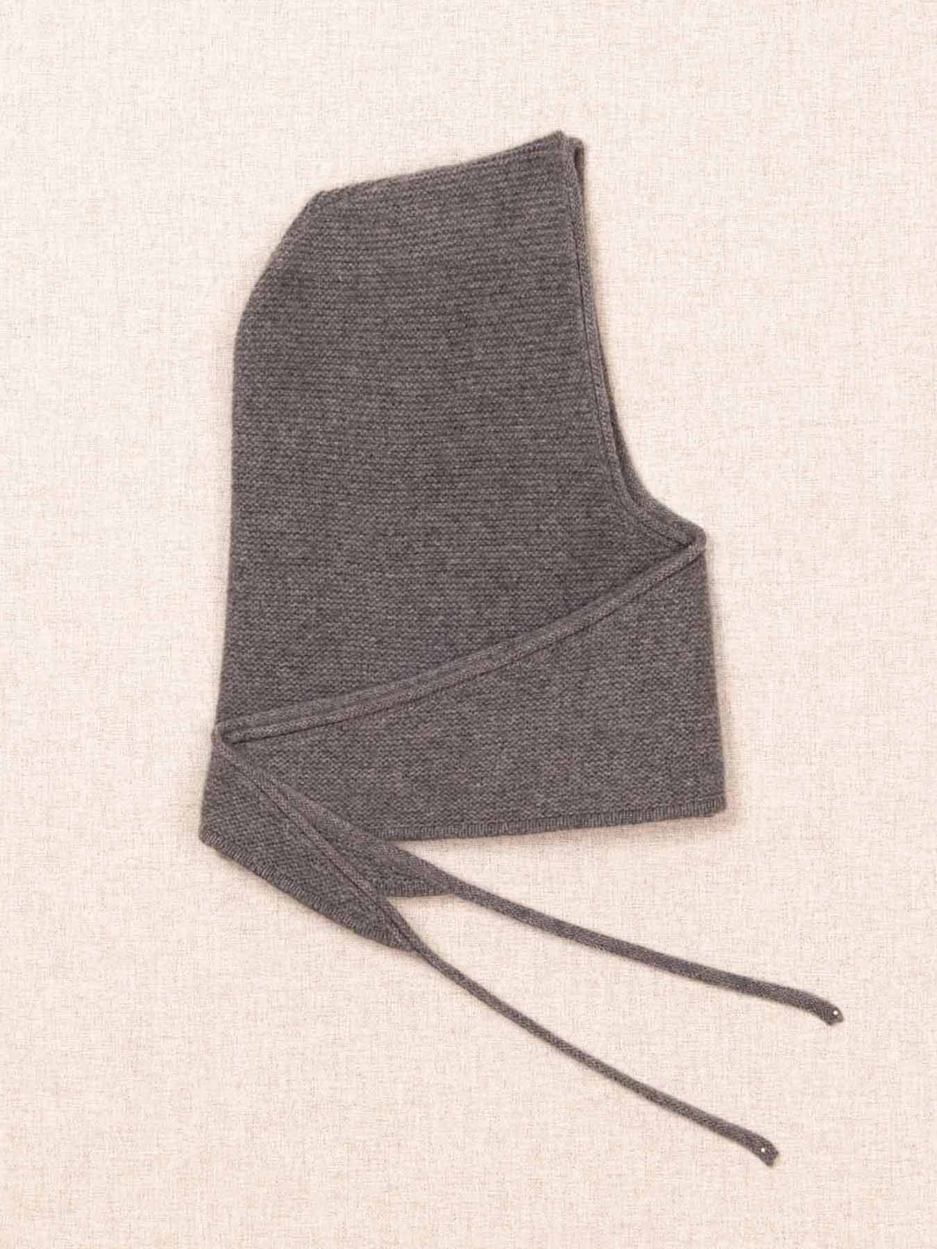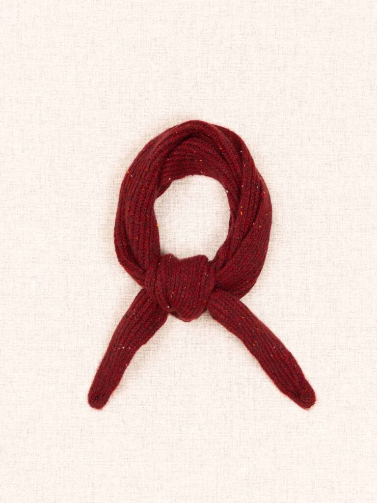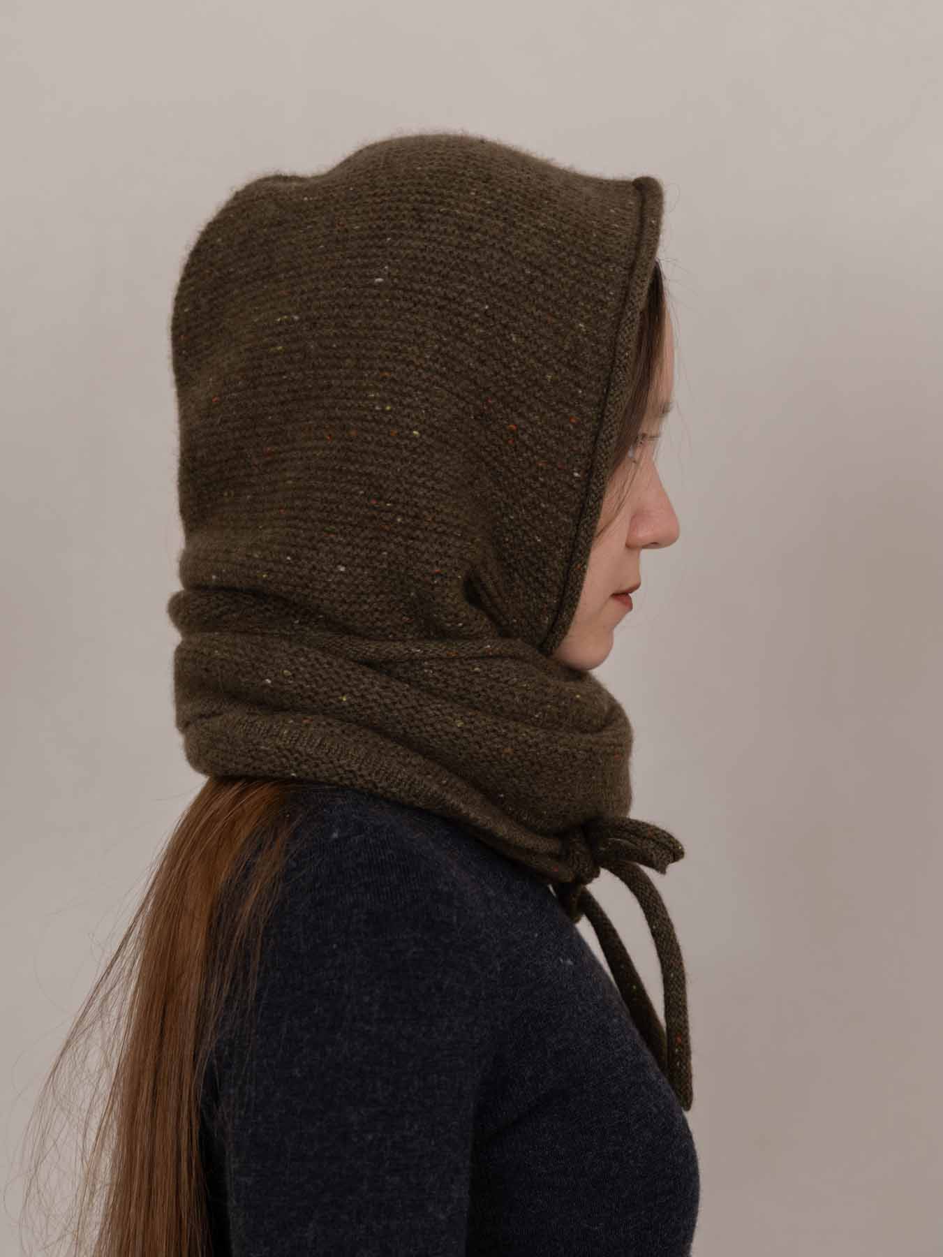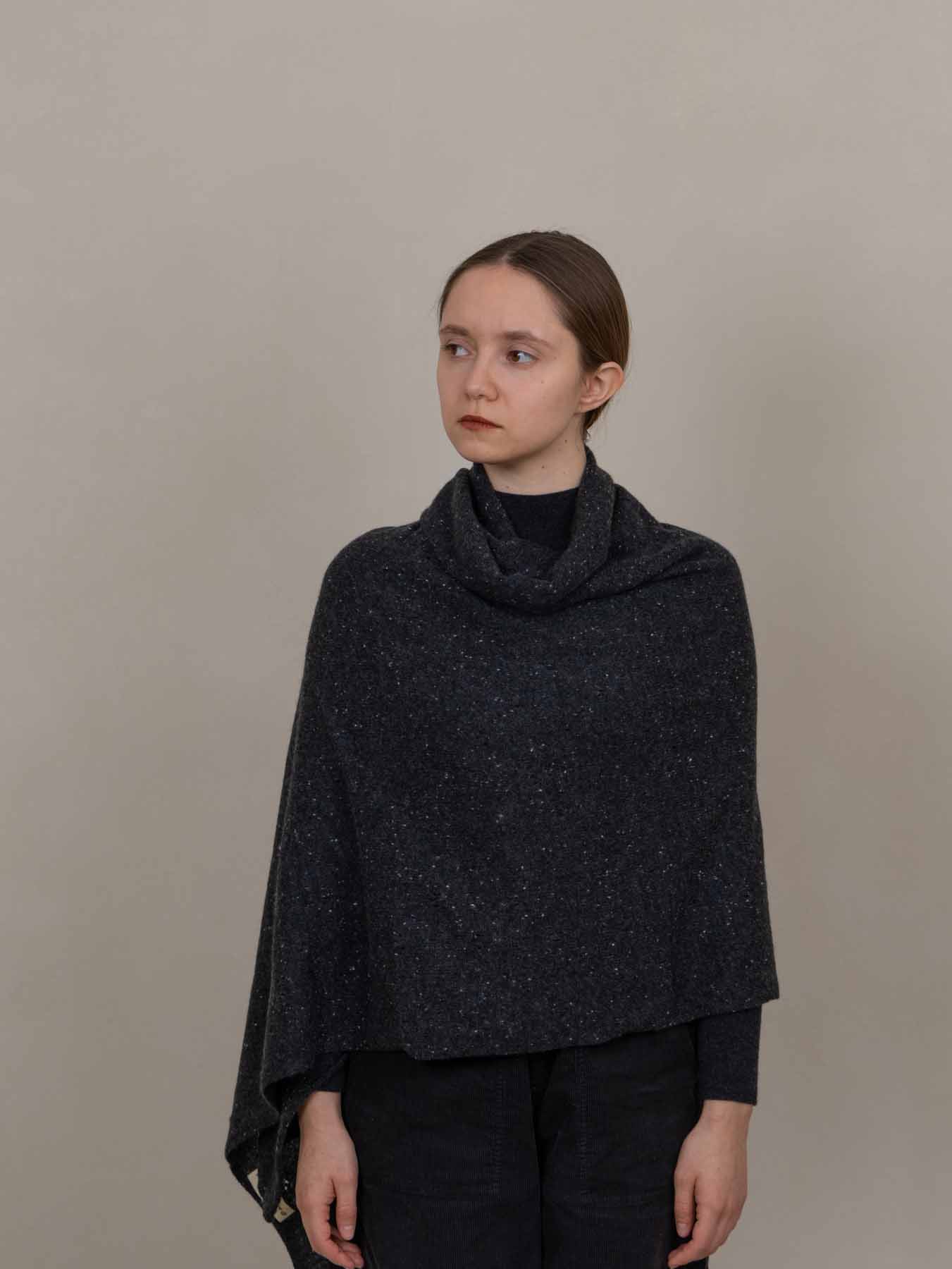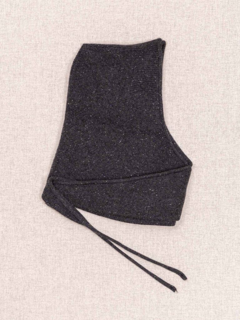 Flecked yarn brings subtle depth to the solid colour, finished with a dense knit in a tie shape.
