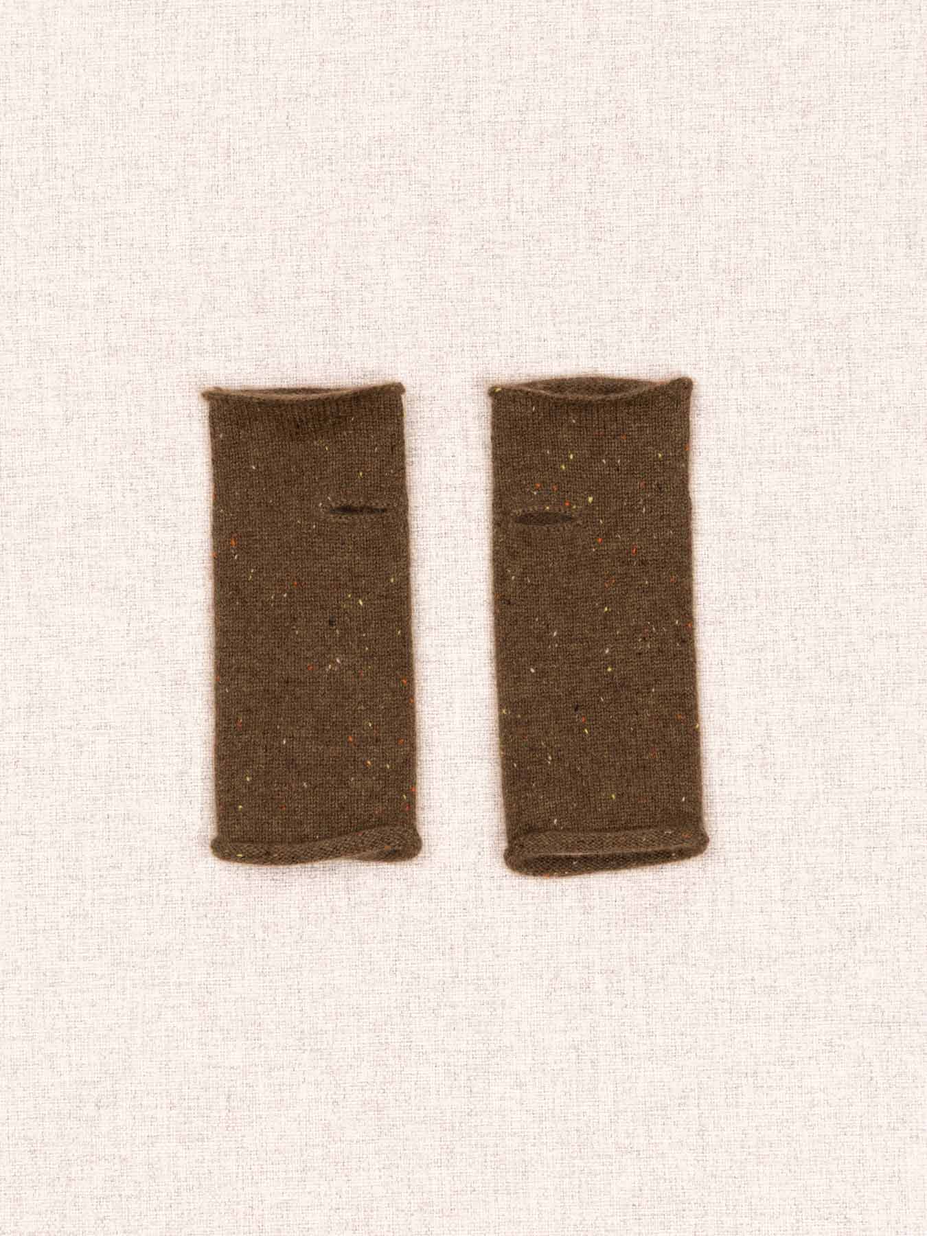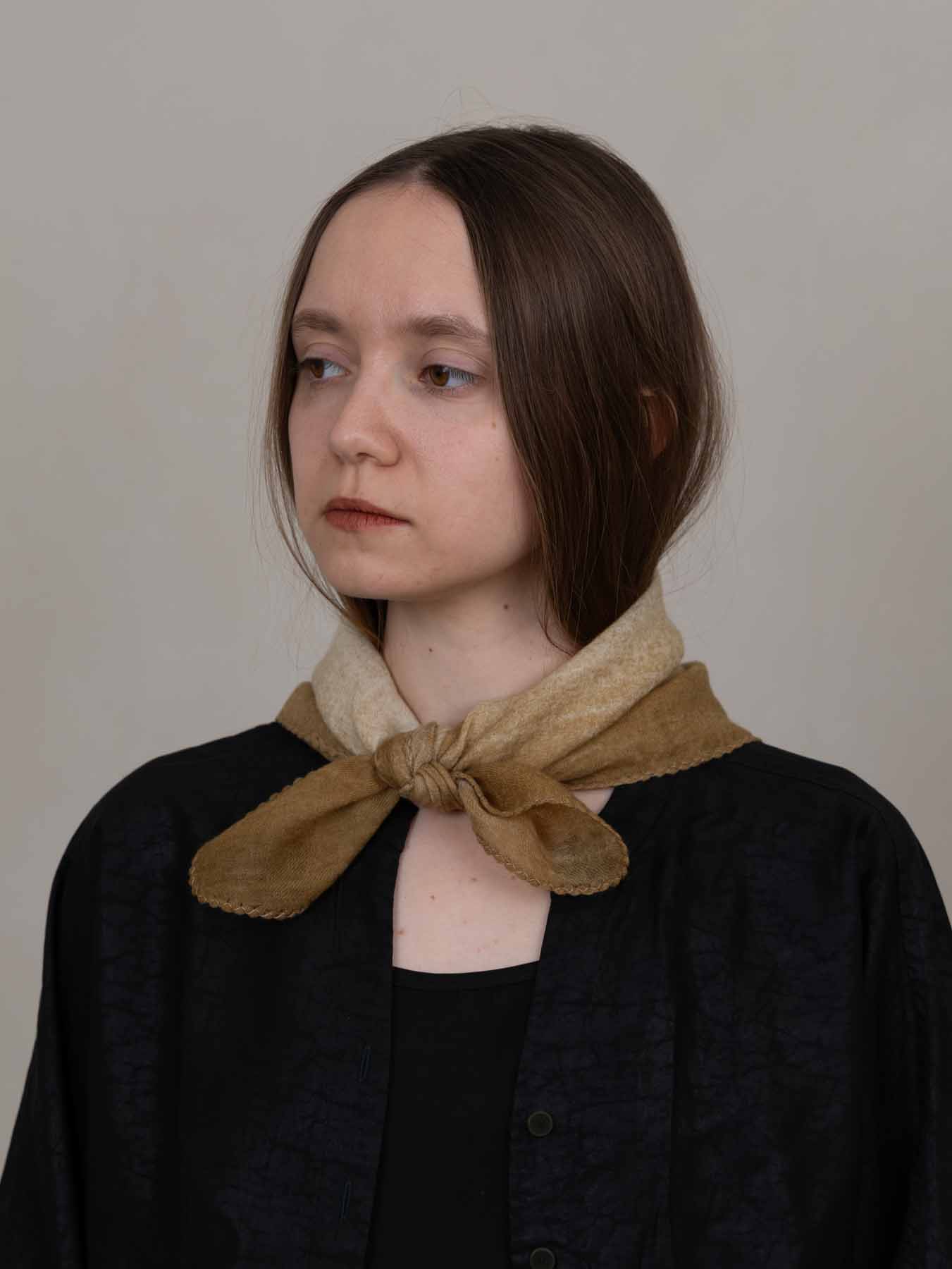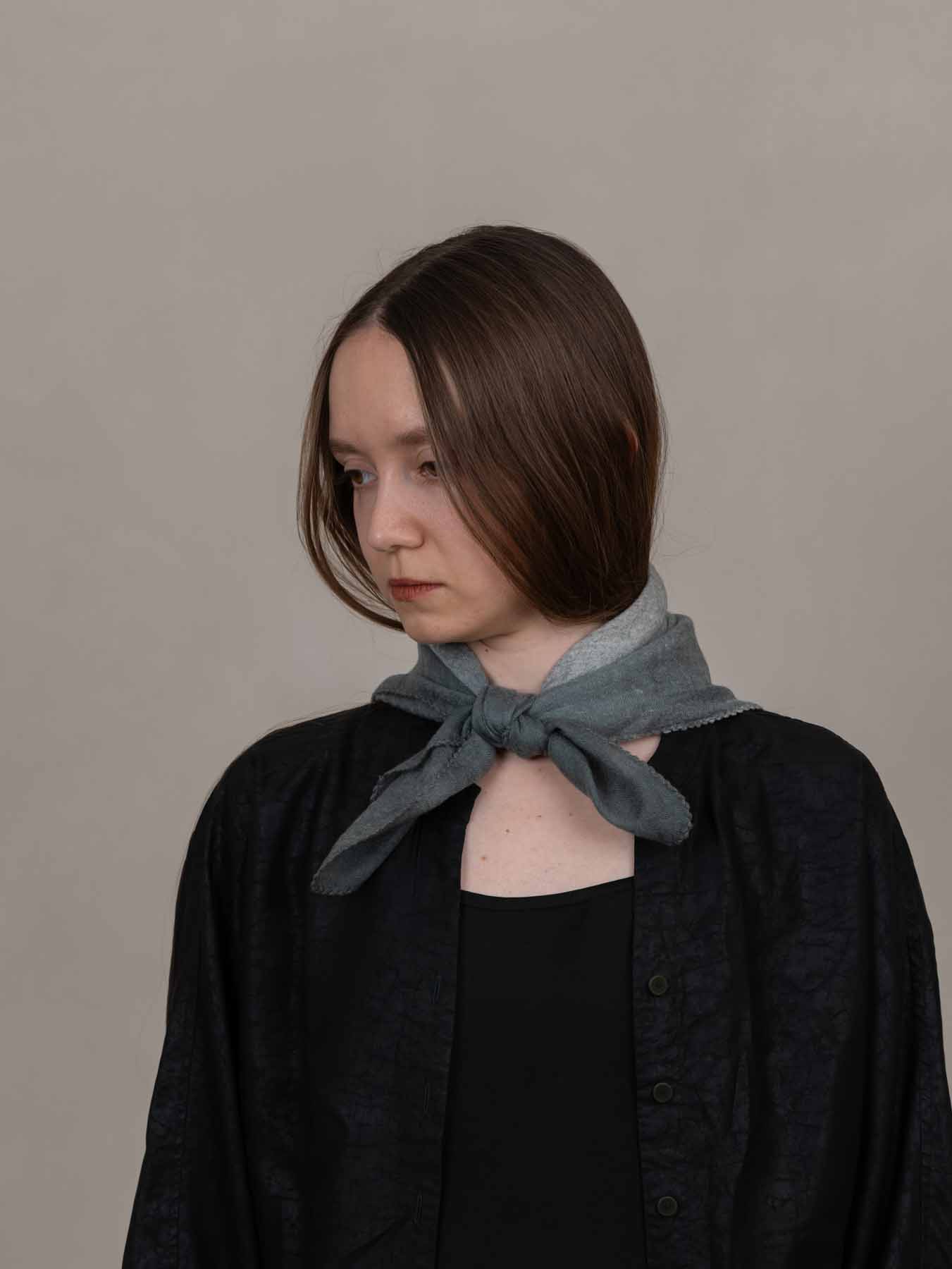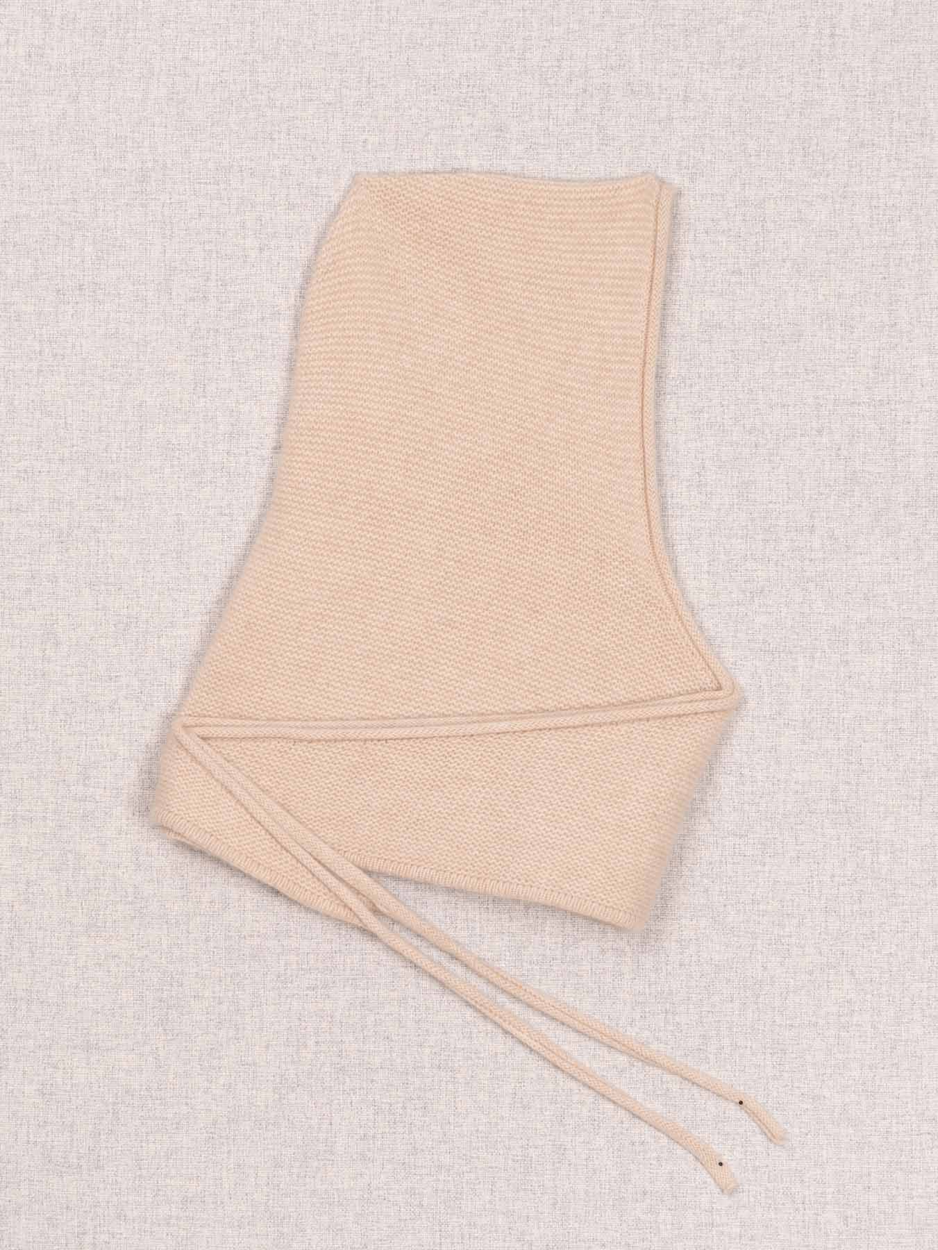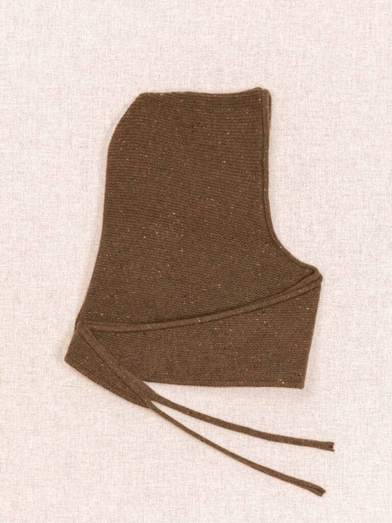 Flecked yarn brings subtle depth to the solid colour, finished with a dense knit in a tie shape.
