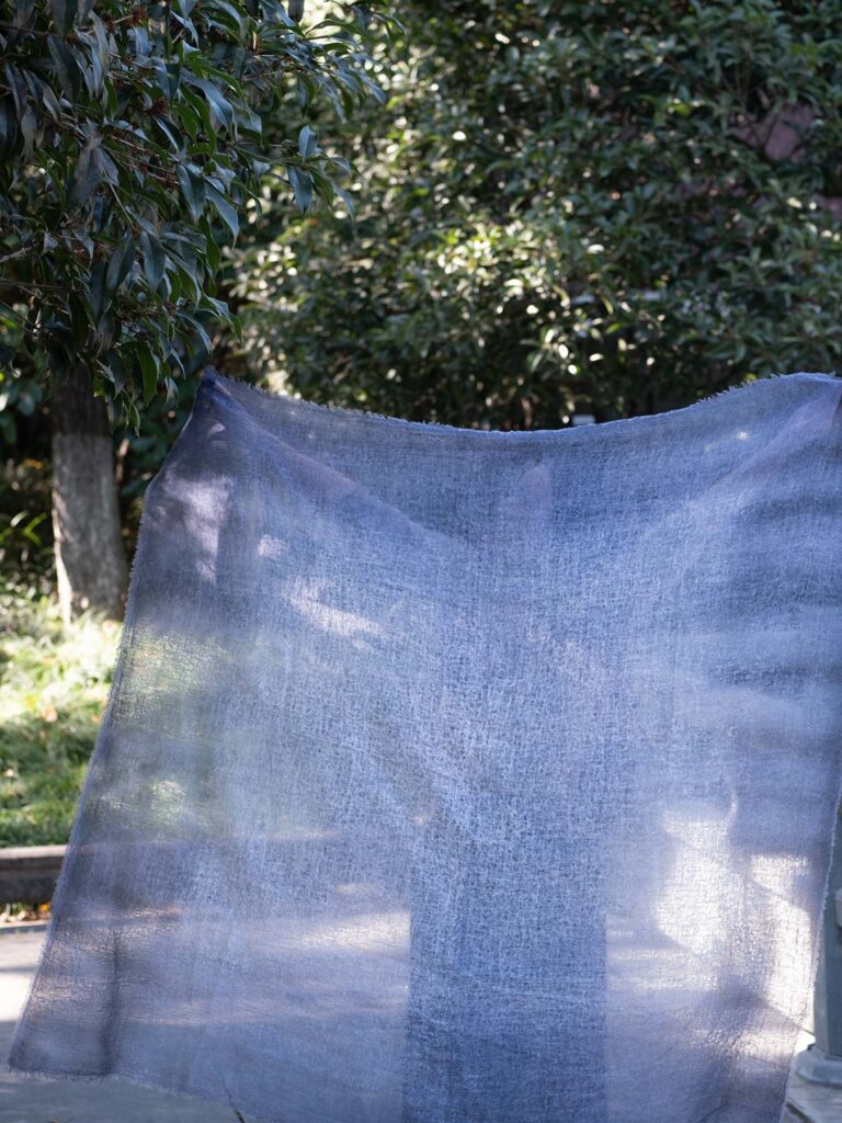 Gauzy cashmere refers to cashmere that is woven in an extremely lightweight, airy, semi-transparent structure. It’s not a different fibre, it’s still pure cashmere, but its construction creates a very unique feel. What should you expect from it?