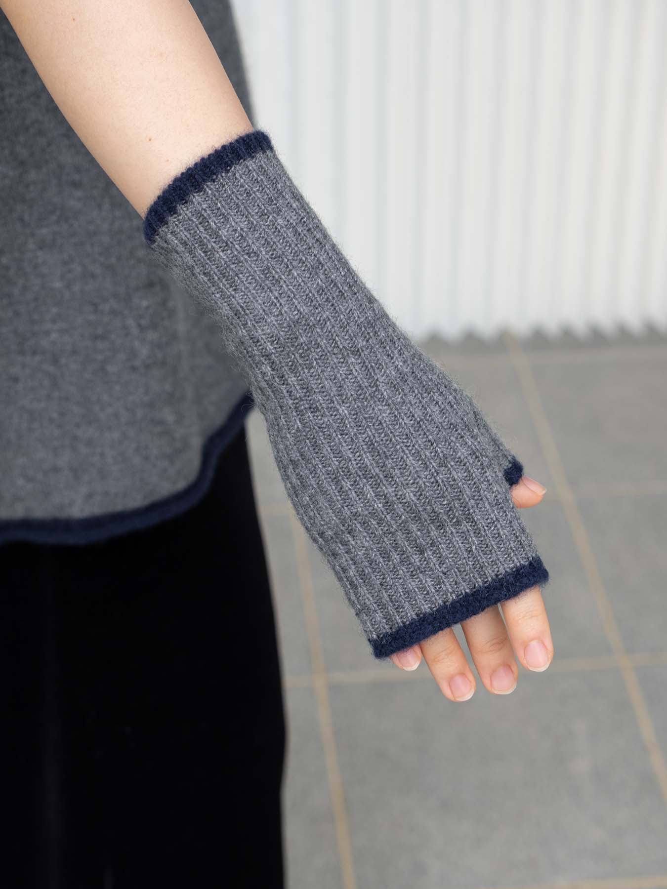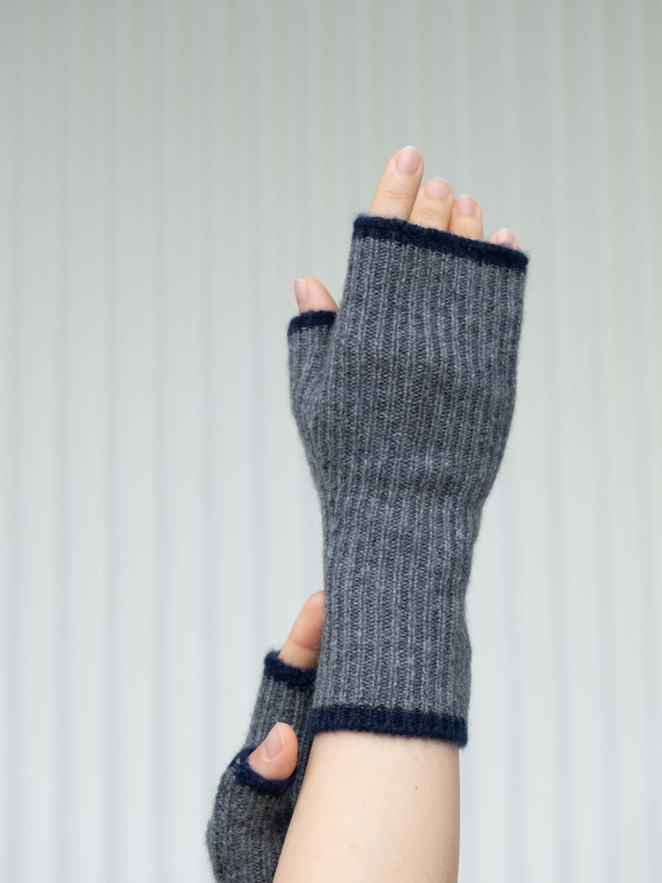 Dorothy Cashmere Ribbed Fingerless Gloves Grey